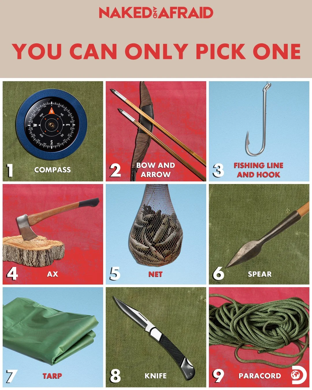 Graphics Daina Trout Press Graphic Naked and Afraid Interactive Social Graphic Astrology x Naked and Afraid What's Your Survival Name You Can Only Pick One: Survival Tools Naked and Afraid: Elimination Card